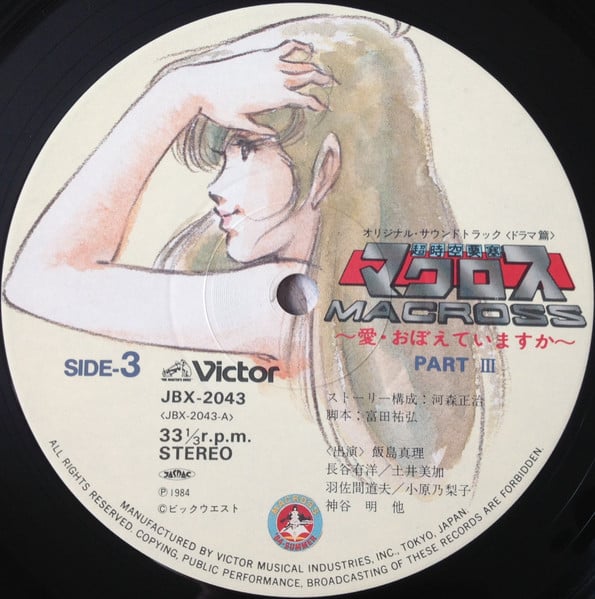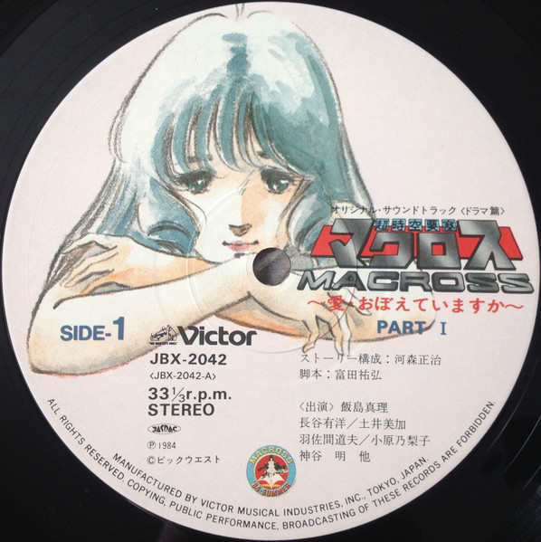 超時空要塞Macross < 可有記起愛 劇場版音樂篇 > 1984 LP黑膠專輯 (共2碟) 超時空要塞マクロス < 愛・おぼえていますか 劇場ドラマ篇 > 1984 LPレコード (2LP) 日本製/Made In Japan LP 唱片狀況良好沒有明顯花痕連側紙, 封面由美樹本晴彥老師繪製, 別具珍藏意義. 封套及內頁由於年代久遠難免出現少許歲月痕跡, 決定購買前請小心考慮, 不設退換. 一般在石硤尾站交收, 另可按買家需要另行安排順豐送貨. 曲目/SONG LIST ~愛・おぼえていますか~ Part I A.1 永遠の愛-プロローグ- A.2 私の彼はパイロット A.3 小白竜 (シャオ・パイ・ロン) A.4 涙のバイオリン A.5 ドッグ・ファイター A.6 ゼントラディアン大要塞 A.7 総攻撃 A.8 0-G Love A.9 ラブ・モーメント ~愛・おぼえていますか~ Part II B.1 ティーン・エイジ・ドリーム B.2 Sunset Beach B.3 戦いの運命 B.4 50万年の戦い B.5 運命の矢 B.6 廃墟の星 B.7 シンデレラ ~愛・おぼえていますか~ Part III C.1 サイレント C.2 都市浮上 C.3 エターナル・ラブ C.4 悲しみのメロディー C.5 シルバームーン・レッドムーン C.6 ビフォー・ザ・バトル C.7 愛・おぼえていますか C.8 進宙式 ~愛・おぼえていますか~ Part IV D.1 揺れ動く心 D.2 ゼントラディアン大要塞 D.3 50万年の戦い D.4 ラブ・モーメント D.5 愛・おぼえていますか D.6 ここより永遠に... ─エピローグ─ D.7 エターナル・ラブ D.8 天使の絵の具